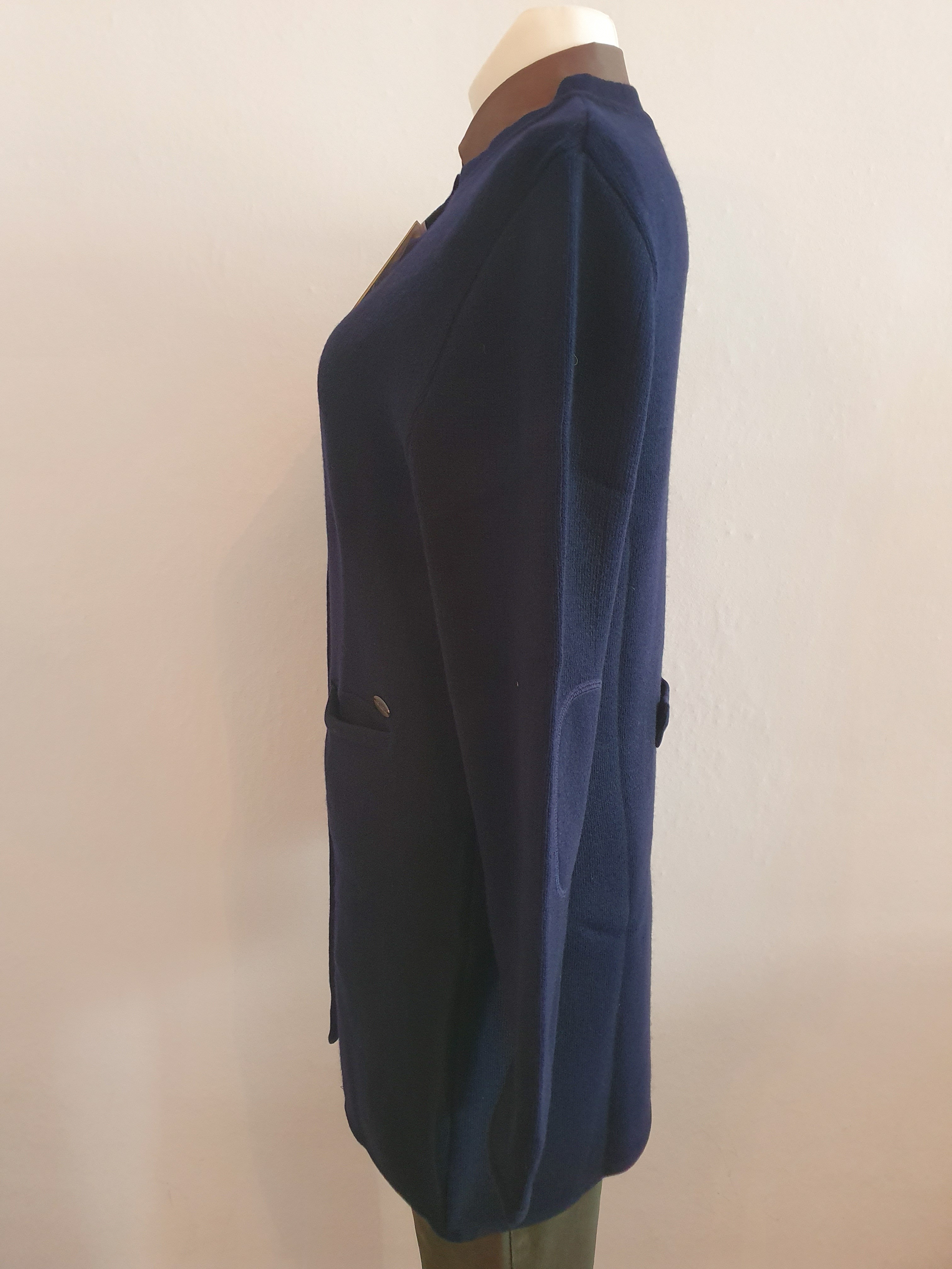 Tragen Sie den Wollmantel in kräftigem Navy-Blau zur Bluse und Jeans im Country Style Look in der Freizeit oder zu festlichen Anlässen.