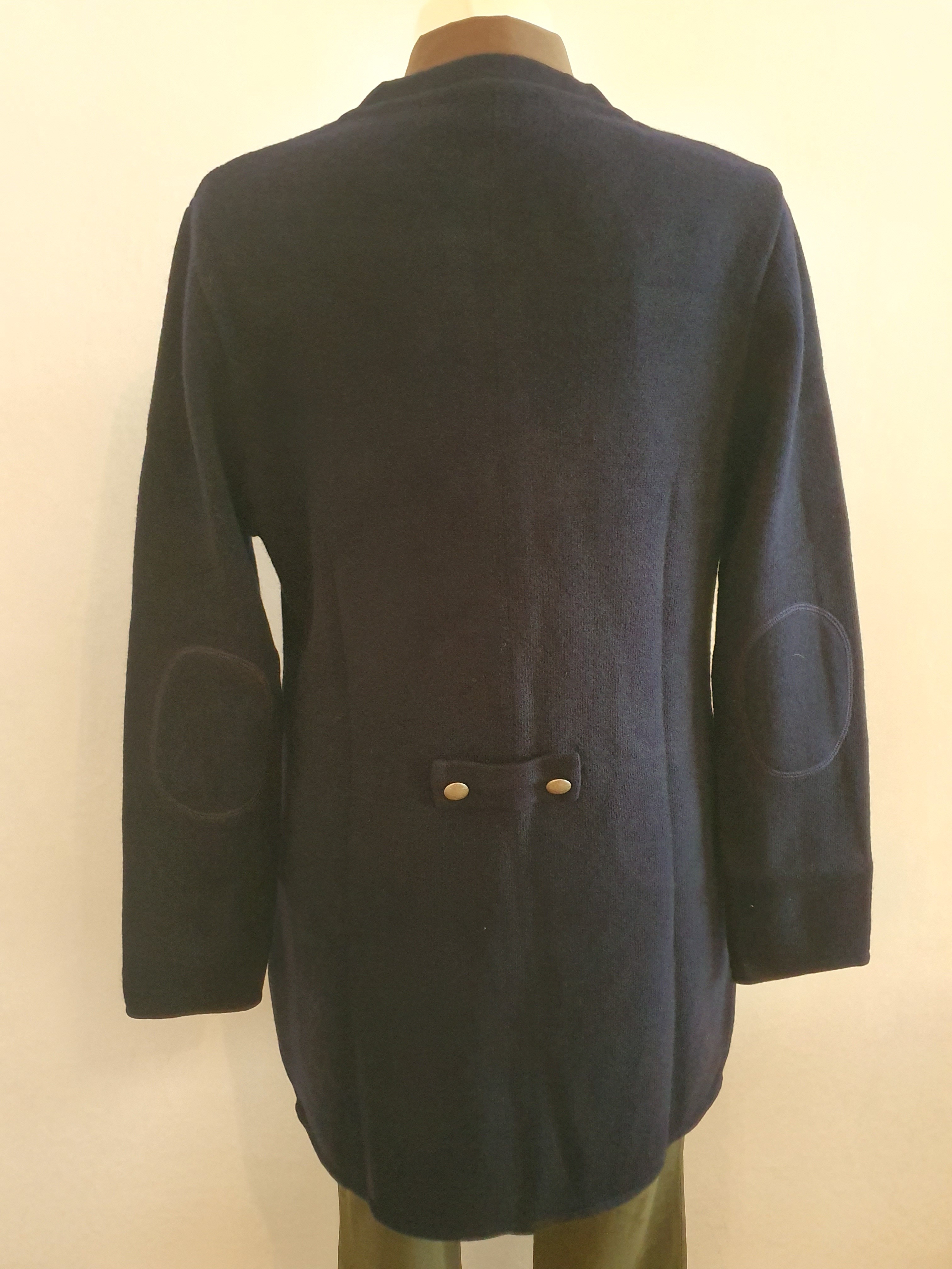 Auch die Rückseite entzückt durch eine leichte Taillierung und aufgesetzten Gürtelansatz mit Knöpfen sowie Ellenbogenpatches - Ton in Ton mit dem Mantel.