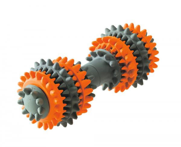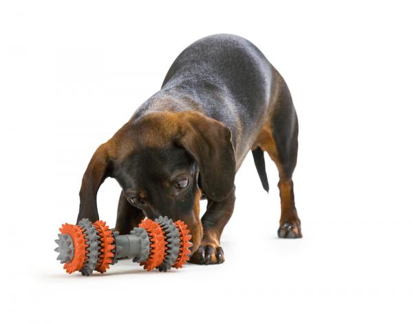 Das Hundespielzeug TOOTH CLEANER von HUNTER in Form einer Kurzhantel bietet Zahnfleischmassage, Zahnreinigung und langanhaltende Beschäftigung in einem. Die einzelnen, genoppten Ringe greifen wie Zahnräder ineinander und lassen sich in zwei Richtungen drehen. Das lädt dazu ein, ein klein wenig Quark, Leberwurst oder andere Snacks in die Zwischenräume zu füllen - und schon ist der Vierbeiner besonders interessiert am TOOTH CLEANER und hoch motiviert auch das letzte bisschen Leckerei aus den Zwischenräumen zu schlecken. Dank der Form eignet sich das innovative Hundespielzeug auch zum Verstecken und Apportieren und für viele weitere Zwecke.
