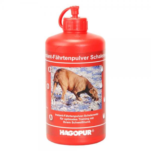 Instant-Fährtenpulver Schalenwild – das ideale Produkt, um den Jagdhund das sichere Aufspüren sowie Verfolgen von Schalenwildfährten zu lehren und/oder regelmäßig mit ihm zu trainieren. Die Fährte kann jederzeit einfach, sauber und schnell angelegt werden – sie ist ganz natürlich. Alle Inhaltsstoffe sind absolut unbedenklich und haben keine Nebenwirkungen, weder für den Hund bei der Arbeit noch für die Umwelt. Das Instant-Fährtenpulver stammt aus der bewährten „Ideenküche“ des Wildbiologen Dipl.-Ing. Hans-Werner Siebeneicher.
