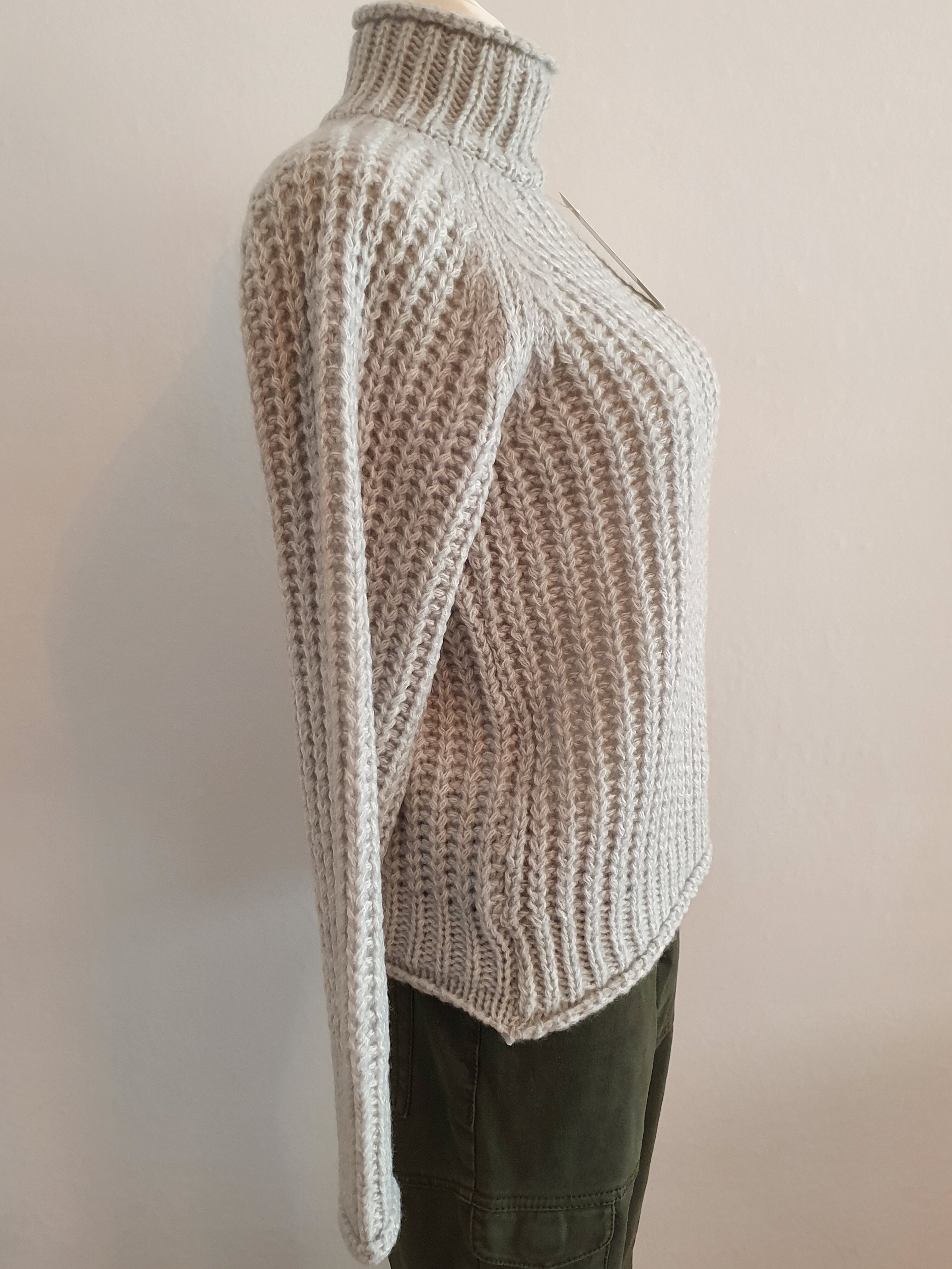 Wärmender Pullover aus 100% Merinowolle in Grobstrick mit Stehkragen - perfekt für den Alltag im Herbst, Winter und dem frühen Frühjahr.