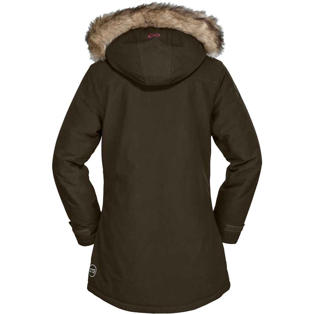 Die Sturmfeste, mehrfach-verstellbare Kapuze der Jacke gewährt der Jägerin eine 180°-Sicht und ist dank eines sehr hochwertigen Kunstfells auch in der nicht-jagdlichen Freizeit ein echter Hingucker. Der Schirm der Kapuze ist leicht versteift, um Regen und Schnee zuverlässig vom Gesicht der Trägerin abzuhalten. Hochschließender, angenehm weich gefütterter Kragen.